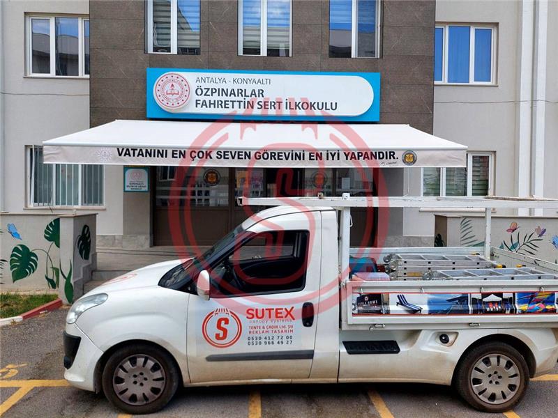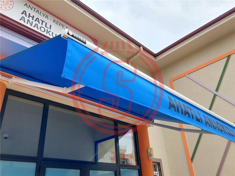 Projeksiyon: kollar 1,5, 2, 2,5, 3 ve 3,5 metre projeksiyonda mevcuttur. Genişlik: En küçük tente boyutu 2,5 metre ve tek parça halinde 6 metreye kadar. (Özel istek üzerine 7m tente montajı yapıyoruz)