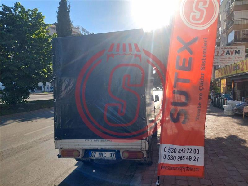 Tır kayar perde sistemleri, yağmur veya güneşin geçmesini engelleyen 1100 dtex PVC kalın polyester kullanılarak uygulama yapılır. İsteğe göre üzerine dijital baskı yöntemiyle çeşitli reklam tasarımları da basılabilmektedir.